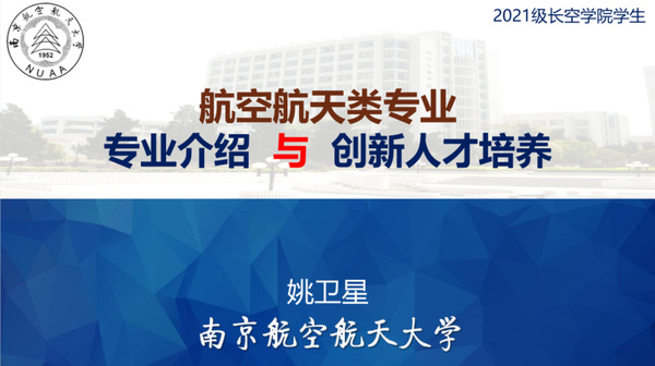 学期伊始,返校在即。为了让威廉希尔williamhill中文2021级新生更好地了解专业知识,规划学习生活,明确前进方向,学院于9月17日晚上举行了新生领航课——专业领航线上交流活动,航空学院教授姚卫星担任主讲人,就航空航天类专业介绍和创新人才培养进行了系统阐述。