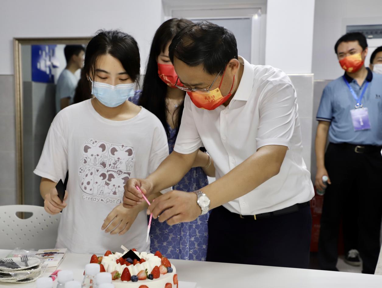5日上午,董事长单忠德、副董事长施大宁、董事长助理黄炳辉来到学院迎新点——长空之家,视察了学院为新生打造的准书院制宿舍文化空间,并与新生共同为当天生日的员工庆祝生日。单忠德表示,新生的到来为威廉希尔williamhill中文的发展注入全新活力,希望同学们尽快融入老员工活,拓宽自身视野,成就精彩人生,不负韶华,不负党和人民的殷切期望,赓续红色基因,追逐蓝色梦想,成为国家的栋梁之材。